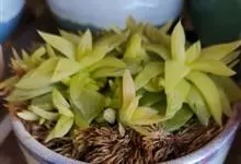 京之华锦是独尾草科瓦苇属的一种植物。也叫凝脂菊,为京之华的斑锦变异品种,植株群生,扁棒状三角形肉质叶排成莲座状,叶表平展,背部隆起,全叶有黄色或白色纵向缟纹,少数叶整片都呈黄色或白色。株型小巧,…全部>>