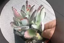 褐斑伽蓝是景天科伽蓝菜属的多年生多肉类植物,茎直立,多分枝,叶生于枝上,肉质叶片匙形,上面密被白色绒毛,下部全缘,叶缘上部有缺刻,缺刻处有深褐或棕色斑块。褐斑伽蓝原产非洲的马达加斯加岛。…全部>>