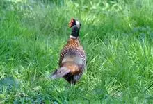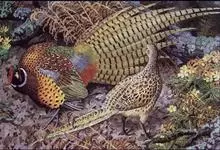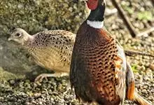 环颈雉是雉科、雉属的一种走禽,共有30个亚种。体重900-1050克,体长53-89厘米。体型较家鸡略小,但尾巴却长得多。雄鸟和雌鸟羽色不同,雄鸟羽色华丽,多具金属反光,…全部>>