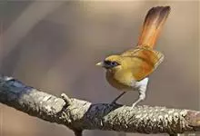棕噪鹛中型鸟类,体长25~28厘米。上体赭褐色,头顶具黑色羽缘,尾上覆羽灰白色,尾羽棕栗色,外侧尾羽具宽阔的白色端斑。额、眼先、眼周、耳羽上部、脸前部和颏黑色,眼周裸皮蓝色,极为醒目。喉和上胸与背同色,…全部>>