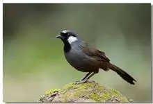 黑喉噪鹛是噪鹛属鸟类。体长24-29厘米,体重75-90克。雄鸟前额、眼先、眼周和眼后纹以及颊、须和喉黑色;黑色前额和蓝灰色头顶之间有道白色细斑;颈侧具椭圆形白斑,…全部>>