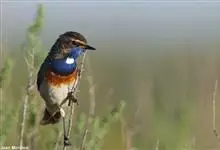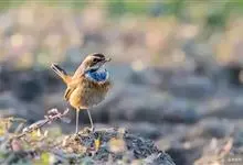 蓝点颏亦称“蓝喉歌鸲”,通称蓝靛颏儿。身体大小和麻雀相似,体长12-13厘米,体重17-18克。头部、上体主要为土褐色。眉纹白色。尾羽黑褐色,基部栗红色。颏部、喉部辉蓝色,下面有黑色横纹。下体白色。…全部>>