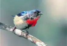 红胸啄花鸟:体重5-10克,体长60-92毫米。体形纤小。雄鸟上体呈辉亮的金属绿色;下体棕黄,胸部具一朱红色块斑,极易与其他啄花鸟区别。雌鸟上体呈橄榄绿,下体棕黄色。虹膜褐色,嘴褐黑色或角灰色,…全部>>