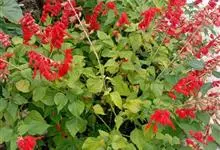 一串红,又称爆仗红、象牙红,为唇形科鼠尾草属植物。花序修长,色红鲜艳,花期又长,适应性强,为中国城市和园林中最普遍栽培的草本花卉。原产巴西、南美洲。喜温暖和阳光充足环境。不耐寒,耐半阴,忌霜雪和高温,…全部>>