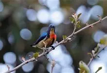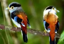 红胸啄花鸟:体重5-10克,体长60-92毫米。体形纤小。雄鸟上体呈辉亮的金属绿色;下体棕黄,胸部具一朱红色块斑,极易与其他啄花鸟区别。雌鸟上体呈橄榄绿,下体棕黄色。虹膜褐色,嘴褐黑色或角灰色,…全部>>
