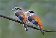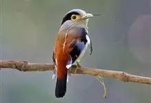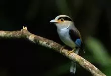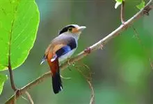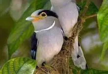 银胸丝冠鸟是雀形目阔嘴鸟科的鸟类,在全世界共分化为10个亚种。体长16-18厘米。嘴宽阔、天蓝色,基部橙色。鼻孔圆形具宽阔的黑色眉纹。上背烟灰色,下背至尾上覆羽栗色,两翅的翼缘白色,翼角羽缘缀浅灰蓝色,…全部>>