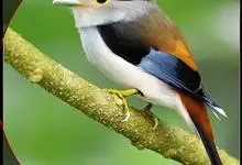 银胸丝冠鸟是雀形目阔嘴鸟科的鸟类,在全世界共分化为10个亚种。体长16-18厘米。嘴宽阔、天蓝色,基部橙色。鼻孔圆形具宽阔的黑色眉纹。上背烟灰色,下背至尾上覆羽栗色,两翅的翼缘白色,翼角羽缘缀浅灰蓝色,…全部>>