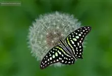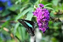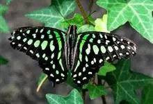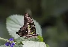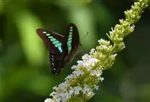 青带凤蝶Graphium sarpedon ,又名青凤蝶,是最普遍的中型凤蝶,飞行速度很快。青带凤蝶的翅膀中央有许多浅蓝色的斑点,很整齐地排列成一条直线。这些斑点由上而下逐渐变大,就像一条青色的带子。全部>>