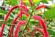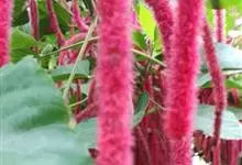 红穗铁苋菜:为大戟科、铁苋菜属植物,灌木,高0.5-3米。嫩枝被灰色短绒毛,毛逐渐脱落,小枝无毛。 花序色泽鲜艳,葇荑花序下垂,如狐狸尾状,雌花近卵形,长约0.8毫米,顶端急尖,具短毛;子房近球形,…全部>>