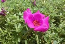 大花马齿苋:一年生草本,高10-30厘米。茎平卧或斜升,紫红色,多分枝,节上丛生毛。叶密集枝端,较下的叶不规则互生,叶片细圆柱形,无毛。花单生或数朵簇生枝端,直径2.5-4厘米,…全部>>