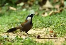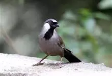 黑喉噪鹛是噪鹛属鸟类。体长24-29厘米,体重75-90克。雄鸟前额、眼先、眼周和眼后纹以及颊、须和喉黑色;黑色前额和蓝灰色头顶之间有道白色细斑;颈侧具椭圆形白斑,…全部>>