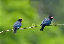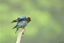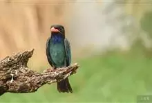 三宝鸟,是佛法僧目佛法僧科三宝鸟属中小型攀禽。成鸟通体为富有光泽的墨蓝绿色,头大而头顶扁平;头部色深近紫黑色,上体至尾泛有铜绿光泽;两翼有幽蓝金属光,初级飞羽黑褐色;羽基淡石青色,形成大块淡蓝,…全部>>