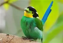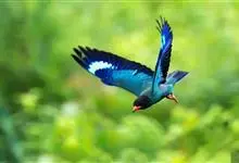 三宝鸟佛法僧科三宝鸟属的鸟类,为佛法僧目三宝鸟属下的一种中小型攀禽,共有10个亚种,体长26-29厘米,体重107-194克。通体蓝绿色,头和翅较暗,呈黑褐色,初级飞羽基部具淡蓝色斑,飞翔时甚明显。…全部>>