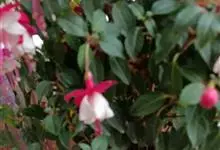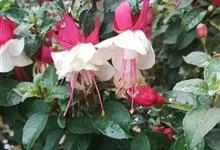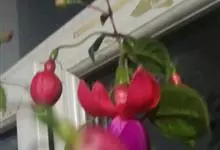 倒挂金钟是柳叶菜科倒挂金钟属亚灌木植物。茎直立,多分枝;幼枝带红色,被短柔毛与腺毛,老时渐无毛;叶对生,卵形或窄卵形,脉常带红色;常带红色,被短柔毛与腺毛;花筒红色,筒状钟形,…全部>>