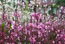 山桃草是柳叶菜科、山桃草属植物。多年生宿根草本。高60-100厘米,叶无柄,椭圆状披针形或倒披针形,花期晚春至初秋;多花型,花蕾白色略带粉红,初花白色,谢花时浅粉红。花紫红色,成密生的穗状花序,…全部>>