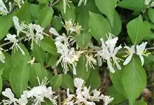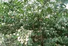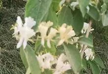 山银花在华南地区野外山林生长。木质藤本,长2~5m。树皮黄褐色渐次变为白色,嫩时有短柔毛。叶对生,卵圆形至椭圆形,长4~8cm,宽3.5~5cm,上面绿色,主脉上有短疏毛,下面带灰白色,密生白色短柔…全部>>