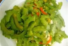 炒苦瓜以苦瓜主料制作的药膳。菜爪苦肉 香,咸鲜苦凉,苦中有鲜味,能刺激人体唾液和胃液分泌,…全部>>