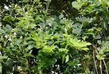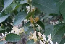山银花在华南地区野外山林生长。木质藤本,长2~5m。树皮黄褐色渐次变为白色,嫩时有短柔毛。叶对生,卵圆形至椭圆形,长4~8cm,宽3.5~5cm,上面绿色,主脉上有短疏毛,下面带灰白色,密生白色短柔…全部>>