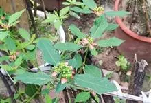 猩猩草:常绿或半常绿灌木,盆栽时株高0.5米-2米,在亚热带地区可长到6米以上。茎直立而光滑,单叶互生,卵状椭圆形至阔披针形,具不规则的深缺刻。长10-15厘米。花小,有蜜腺,排列成密集的伞房花序。…全部>>
