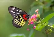 报喜斑粉蝶是粉蝶科斑粉蝶属的一种动物,又名红肩粉蝶、藤粉蝶等。幼虫群集性很强,从同一卵块孵化出的幼虫,幼龄期全部群集在一起取食,高龄幼虫常分散成小群。幼虫群集危害叶片,造成秃枝,严重者可将树吃成光杆,…全部>>