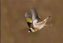 红额金翅雀:共有14个亚种。小型鸟类,体长12-14厘米。额、脸颊和颏朱红色,眼先和眼周黑色,在淡色的头部极为醒目。上体灰褐或乌褐色,尾上覆羽白色,两翅和尾黑色,翅上有黄色斑。下体喉、胸灰褐或乌褐色…全部>>