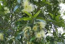 蒲桃 Alston)是桃金娘科蒲桃属植物,又名水蒲桃、香果、响鼓、风鼓。蒲桃为乔木植物,株高10米,主干极短,广分枝;小枝圆形;叶革质,披针形或长圆形,先端长渐尖,基部阔楔形,叶面多透明细小腺点,…全部>>