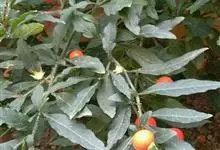 珊瑚樱是茄科茄属植物。株高达2米;植株无毛;叶窄长圆形或披针形,长1-6厘米,基部窄楔形下延,全缘或波状,侧脉4-7对;叶柄长2-5毫米;花单生,稀双生或成短总状花序与叶对生或腋外生,…全部>>