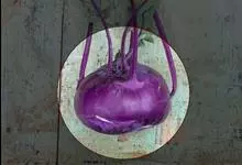 擘蓝是十字花科,芸薹属二年生草本植物,高可达60厘米,茎短,无毛,离地面处膨大实心长圆球体或扁球体,绿色,其上生叶。叶片略厚,边缘有不规则裂齿;叶柄常有少数小裂片;总状花序顶生;种子有棱角。4月开花,…全部>>