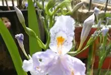 扁竹兰是鸢尾科鸢尾属植物,多年生草本。根状茎横走,直径4-7毫米,黄褐色,节明显,节间较长;须根多分枝,黄褐色或浅黄色。地上茎直立。叶10余枚,密集于茎顶,基部鞘状,互相嵌迭,排列成扇状,叶片宽剑形,…全部>>