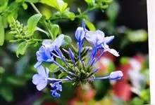 蓝花丹是白花丹科、白花丹属的常绿亚灌木。高约1米;叶薄,呈菱状卵形至狭长卵形;穗状总状花序,总花梗短,花冠淡蓝色至蓝白色,呈倒卵形,苞片呈线状狭长卵形,小苞呈狭卵形或长卵形,…全部>>