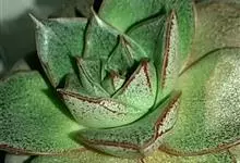 大和锦是景天科拟石莲花属的多肉植物。肉质叶排成紧密的莲座状,广卵形至散三角卵形,背面突起呈龙骨状,叶长3至4厘米,宽约3厘米,先端急尖。叶色灰绿,密布红褐色的斑纹。花序高约30cm。小花红色,上部黄色。…全部>>