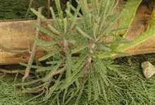 棒叶落地生根是景天科、落地生根属植物。茎直立、粉褐色。叶圆棒形,上表面有沟、粉色,有红褐斑。叶片交互对生,交叉排列成十字形。叶端锯齿上长有很小的幼株、落地后即可生根成活。原产非洲马达加斯加。…全部>>