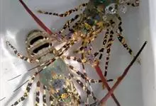 锦绣龙虾为无螯下目,龙虾科,龙虾属的一种,俗称青龙虾、花龙虾、山虾、大和虾、沙虾等。体长可达60厘米,是龙虾属中体型最大者。腹部、第一触角和步足有黑褐色和黄色相间的斑纹。触角的基部有四对疣刺,…全部>>