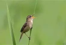 黑眉苇莺:体重7-11克,体长11-13厘米。上体橄榄棕褐色;眉纹淡黄色,杂有明显黑褐色纵纹;第2枚初级飞羽较第6枚短;下体白色,两胁暗棕色。虹膜暗褐色;嘴黑褐色,下嘴基淡褐色;脚暗褐色。…全部>>