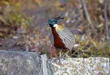 血雉雉科血雉属鸟类,别名血鸡、松花鸡,血雉的雄鸟大覆羽、尾下覆羽、尾上覆羽、脚、头侧、腊膜为红色,故称血雉。其别名甚多,各地皆异。在甘肃,因其胸侧和翅上覆羽沾绿,被称为“绿鸡”;因其羽毛形似柳叶,…全部>>