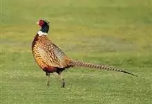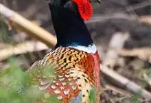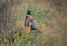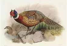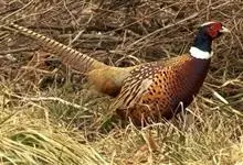 环颈雉是雉科、雉属的一种走禽,共有30个亚种。体重900-1050克,体长53-89厘米。体型较家鸡略小,但尾巴却长得多。雄鸟和雌鸟羽色不同,雄鸟羽色华丽,多具金属反光,…全部>>