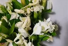 姜花又名野姜花。是姜科姜花属的多年生草本植物,茎高1-2米;叶片长圆状披针形或披针形,叶面光滑,叶背被短柔毛;穗状花序顶生,椭圆形,花芬芳,白色;蒴果卵状三棱形,微黄绿色;种子鲜红色,具橘红色的假种皮。…全部>>