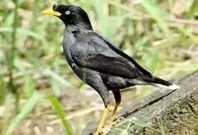 金冠树八哥为椋鸟科树八哥属的鸟类。体长约23厘米,闪辉黑色。特征为具翼斑及颏黄色,脸颊裸露皮肤粉黄色。分布于印度、缅甸、泰国以及中国大陆的云南、广东等地。…全部>>