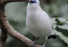 长冠八哥:是一种大型椋鸟,体长约25厘米,雌雄相似,外形俊朗,羽冠发达,眼睛四周和面部裸出,裸露部分为蓝色,全身羽毛纯白色,尾部和翼端的边缘呈黑色,脚灰色。全身白色,具较长冠羽,…全部>>