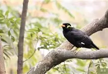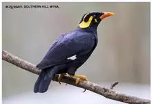 金冠树八哥为椋鸟科树八哥属的鸟类。体长约23厘米,闪辉黑色。特征为具翼斑及颏黄色,脸颊裸露皮肤粉黄色。分布于印度、缅甸、泰国以及中国大陆的云南、广东等地。…全部>>