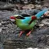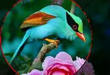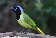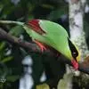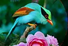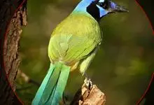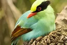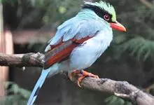 蓝绿鹊:中型鸟类,共有5个亚种。体长36-38厘米。尾长,嘴、脚红色。通体羽色主要为草绿色,宽阔的黑色贯眼纹向后延伸到后颈,在绿色的头侧极为醒目。两翅栗红色,内侧飞羽具黑色次端斑和白色尖端。尾绿色,…全部>>