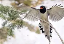 红嘴蓝鹊,别名山鹊、长尾鹊,是鸦科蓝鹊属的一种观赏性较强的大型鸣禽。该物种为体长54~65cm,头、颈、喉和胸黑色,头顶至后颈有一块白色至淡蓝白色或紫灰色块斑,其余上体紫蓝灰色或淡蓝灰褐色。尾长呈凸状,…全部>>