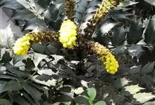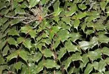 十大功劳 Fedde),小檗科十大功劳属常绿灌木植物。叶子较大且较多,呈椭圆形,绿色,表面光滑无毛,叶柄较长;花朵较小,呈多边形,黄色,花瓣对称分布,表面有绒毛;果实呈圆形,褐色,…全部>>