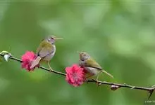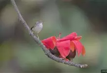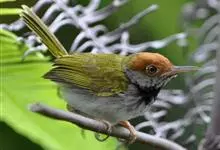 黑喉缝叶莺:体长11.5厘米,是一种小型的顶冠棕色、腹部白色的莺。尾甚长而常上翘,臀黄色,具特征性的偏黑色喉,上体橄榄绿色,头侧灰色。雌鸟色暗,头少红色且喉少黑色。与长尾缝叶莺的区别在后顶冠亦为棕色,…全部>>