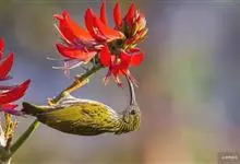 红胸啄花鸟:体重5-10克,体长60-92毫米。体形纤小。雄鸟上体呈辉亮的金属绿色;下体棕黄,胸部具一朱红色块斑,极易与其他啄花鸟区别。雌鸟上体呈橄榄绿,下体棕黄色。虹膜褐色,嘴褐黑色或角灰色,…全部>>