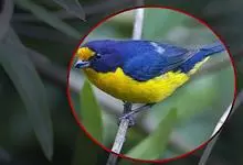黄腹啄花鸟:体重11-16克,体长104-117毫米。是一种体型大,下腹部为艳黄色的啄花鸟,雄鸟特征为头黑色,喉部有白色纵斑、喉侧及上体成对比,两翅和尾黑色,外侧尾羽内翈具白色斑块。其余下体淡黄色。…全部>>