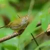普通缝叶莺,是雀形目鹅科莺亚科缝叶莺属一种。体长10-14厘米,体重7-10克,雄鸟前额棕红,头顶至枕棕橄榄褐,上体橄榄绿染黄,飞羽及尾羽暗褐;繁殖期雄鸟的中央尾羽特形延长,下体淡皮黄白色。…全部>>