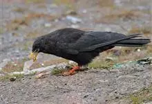 红嘴山鸦,是脊索动物门鸟纲雀形目鸦科鸟类。红嘴山鸦的成鸟通体羽毛纯黑色具有蓝色金属光泽,翼和尾泛有蓝绿色金属光泽;虹膜暗褐色,喙较为尖细,并且呈镰状下弯,喙和脚朱红色。…全部>>