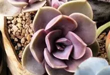 紫珍珠是景天科石莲花属的多年生肉质草本植物。植株中小型;叶片肉质,匙形,呈莲座状紧密排列;叶片粉紫色,叶缘呈粉白色,光照充足时颜色亮丽,不足时叶色会呈现深绿色或灰绿色,叶面光滑,被轻微白粉,…全部>>