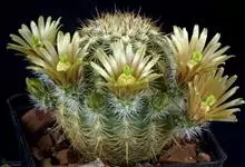 白雪光为南国玉属多年生肉质植物。茎球形或稍扁圆形,高约10厘米左右,单生,直径为6至10厘米,有小疣状突起,呈螺旋状排列,球体密生3至5毫米的放射形白刺,中心刺淡黄色。花顶生,漏斗状,绯红色,花从白…全部>>